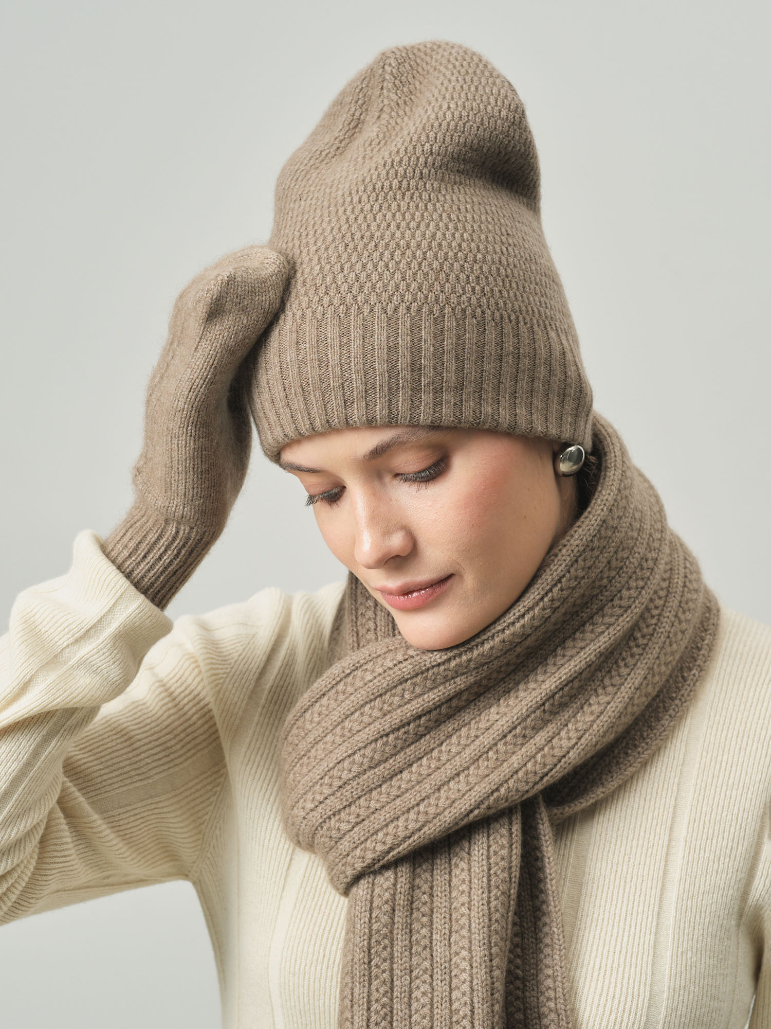 Шапка из кашемира KW101172-F капучино