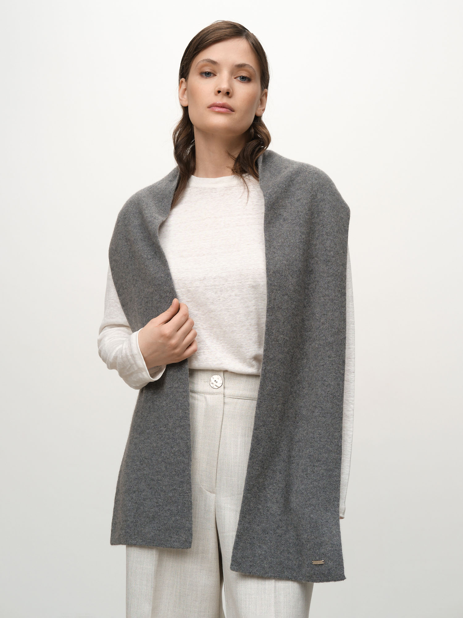 Классическая прямоугольная форма с аккуратной обработкой краёв. Лаконичный минималистичный дизайн подчёркивает благородную текстуру кашемира и делает шарф универсальным аксессуаром для различных образов.