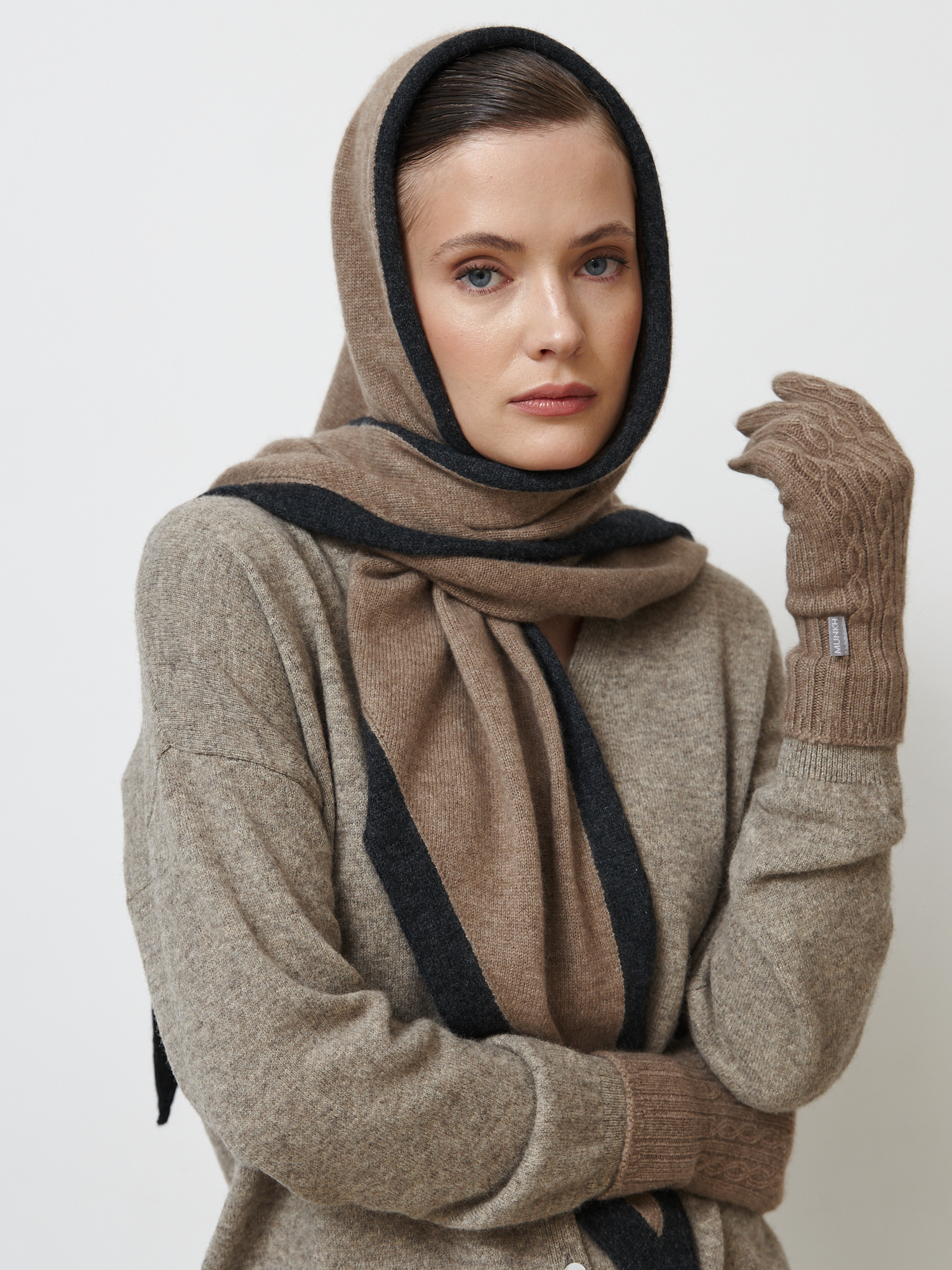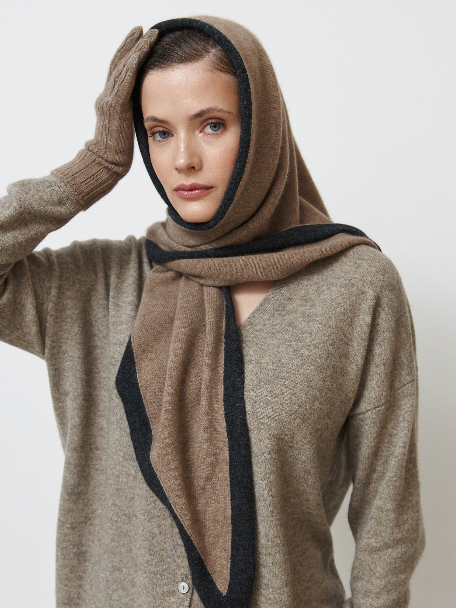 Косынка из кашемира 09092 капучино/графит