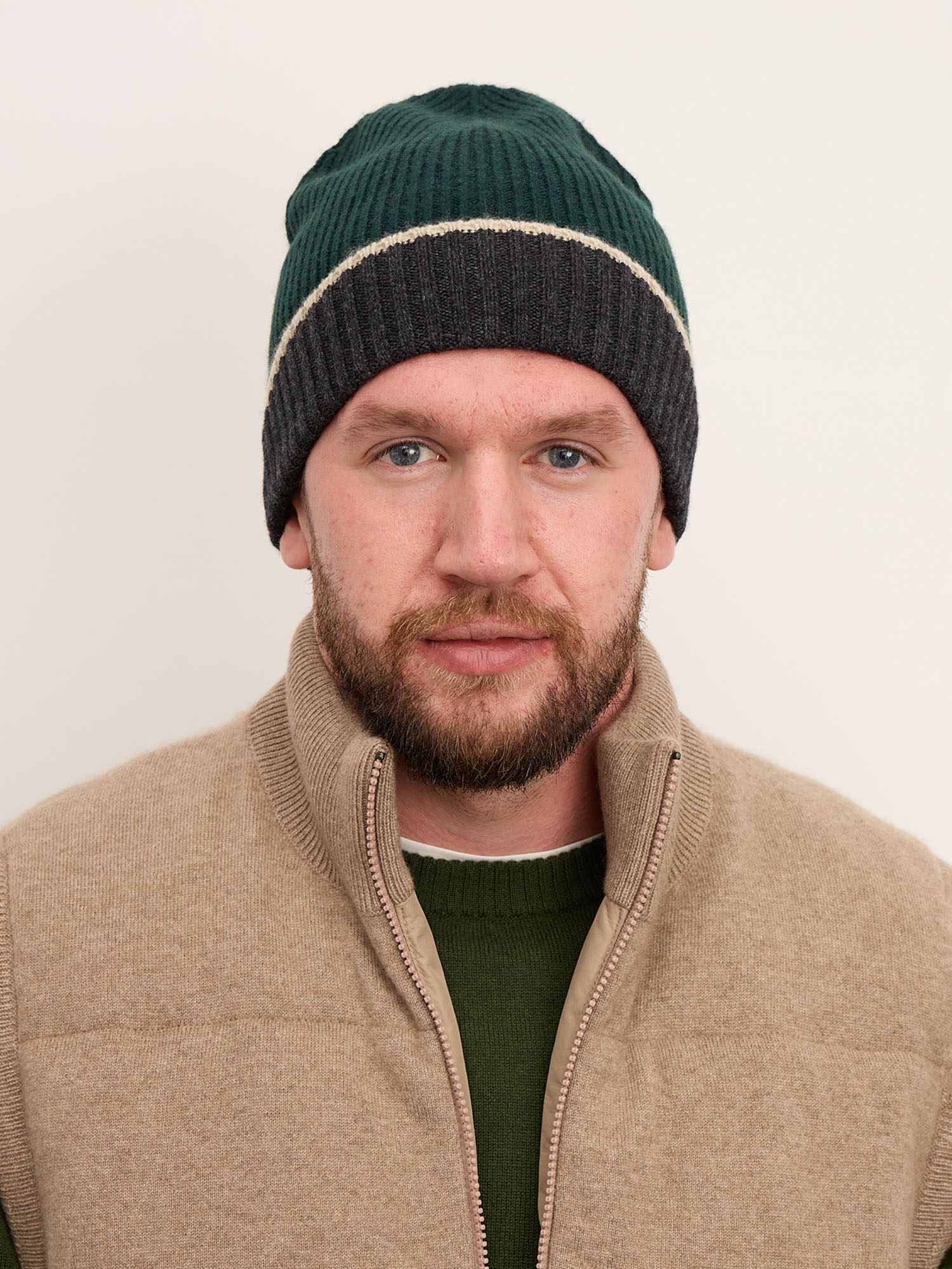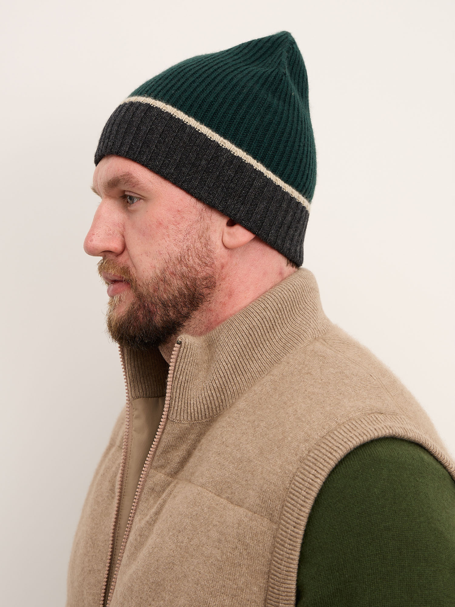 Шапка из кашемира в тёмно-зелёном цвете — это комфорт, тепло и уверенный стиль, созданный для современного мужчины, который ценит качество и естественную элегантность.