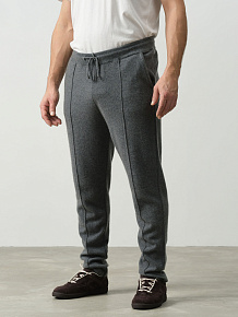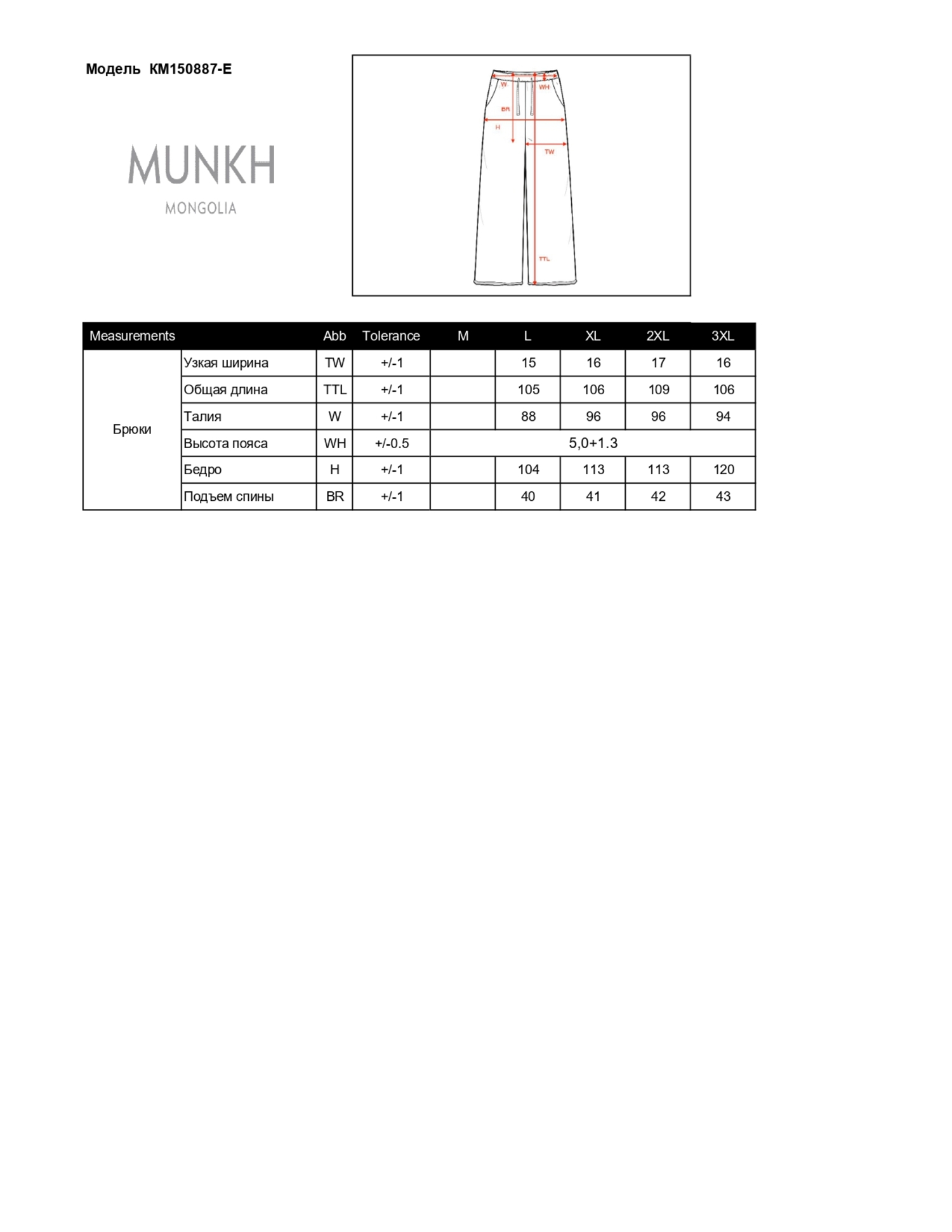 Прямой силуэт с заужением к низу, эластичный пояс с регулируемым шнурком, декоративные вертикальные швы визуально вытягивают силуэт.