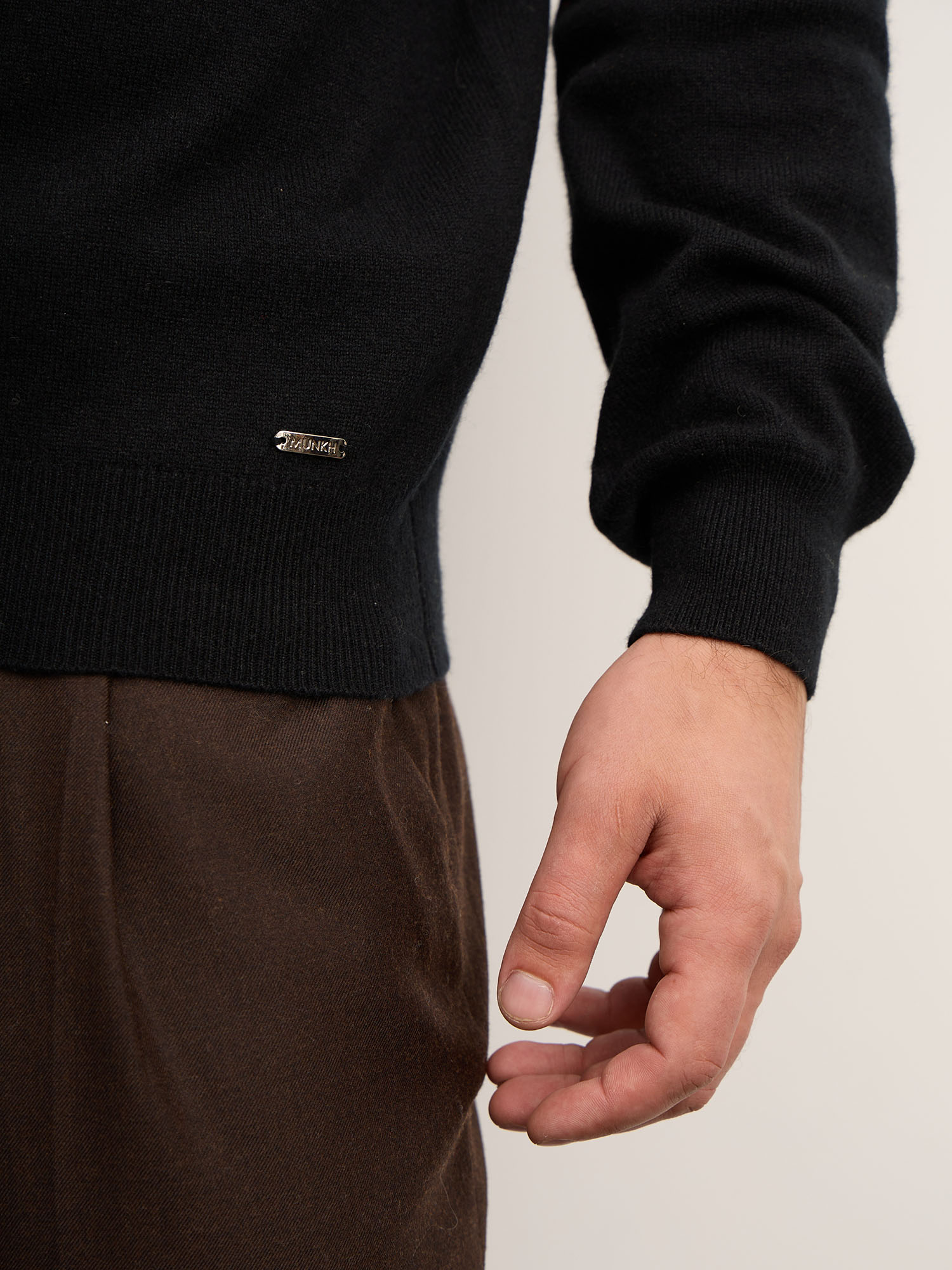 Мягкий высокий ворот, аккуратные манжеты и нижняя резинка, качественная вязка, устойчивая к деформации.