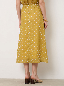 Юбка из тенселя 8011946 в зелёном оттенке с принтом в горошек — женственная и лёгкая модель, которая идеально подходит для тёплого сезона. Классический силуэт миди и аккуратный ретро-принт создают элегантный и стильный образ. Юбка гармонично сочетается с блузой из той же ткани или базовыми топами, позволяя создавать утончённые повседневные комплекты.